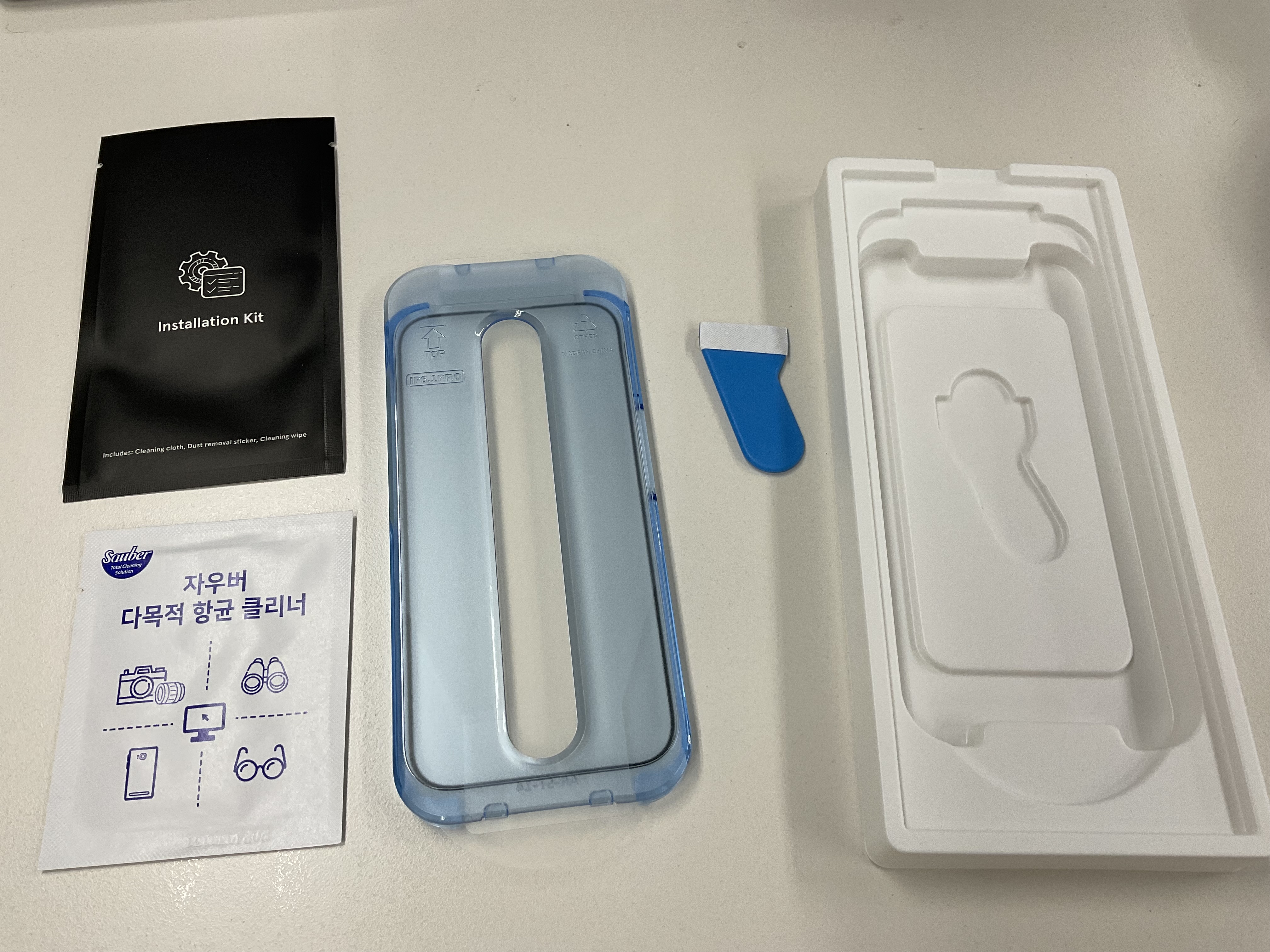 제품 케이스를 열어 보았을 때도 부착에 필요한 것들로만 깔끔하게 구성이 되어 있었습니다. 간혹 저 중간에 있는 밀대를 따로 제공해 주지 않아서 다른 제품에서 받은 밀대를 사용하는 경우도 있었는데 해당 제품에는 포함이 되어 있습니다. 해당 제품을 구매하신다면 굳이 따로 구성품을 준비하실 것은 없어 보입니다.