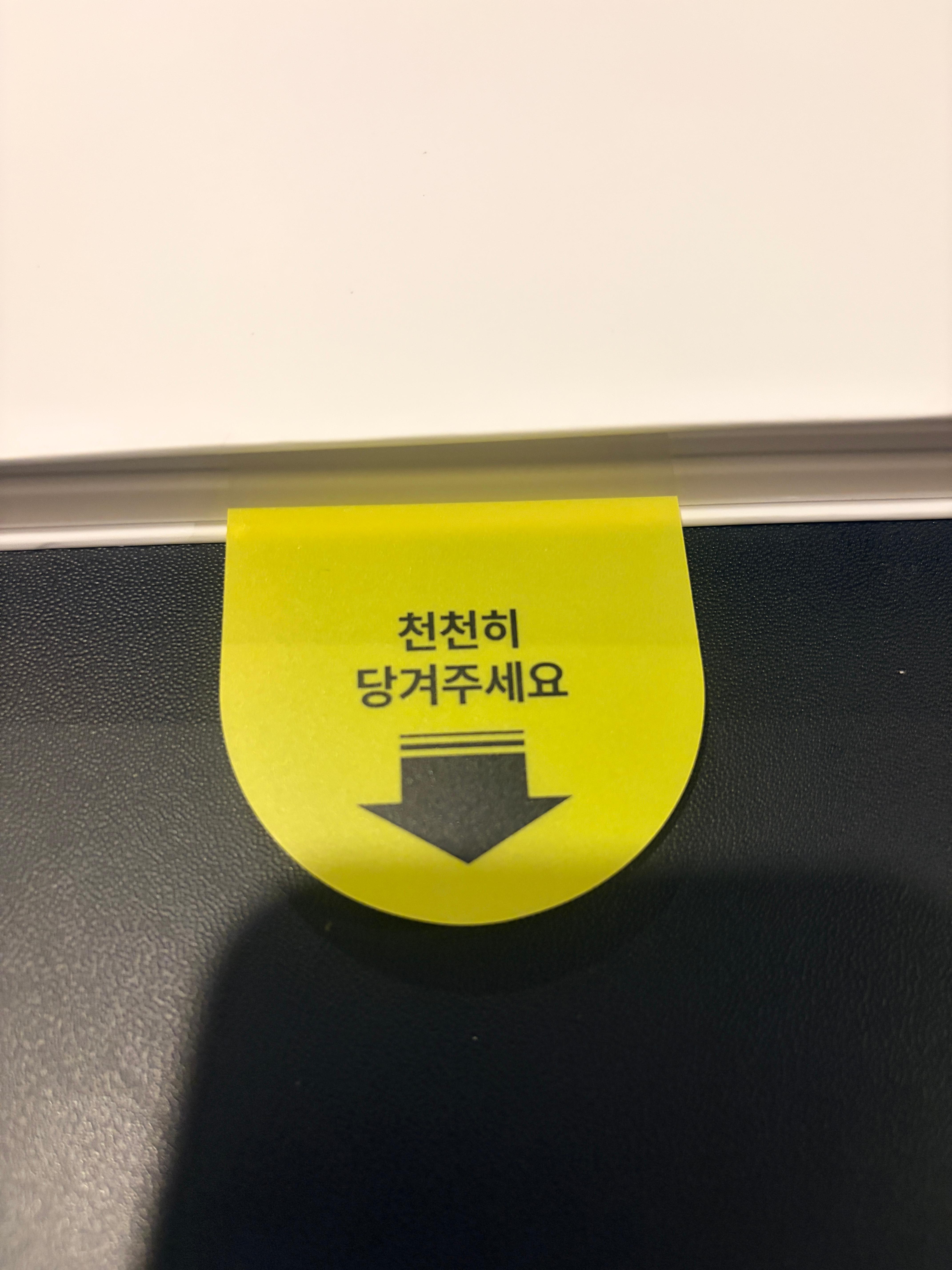어쨌든 가이드 툴에 잘 맞췄으면 아래와 같이 가이드 툴의 덮개를 닫아주고 아래의 천천히 당겨주세요를 당기면 된다. 가이드 툴의 Press Here 부분을 한 손으로 누른 채 정말 천천히 기포 없이 붙기를 원하는 마음으로 당기기 시작하면 된다.